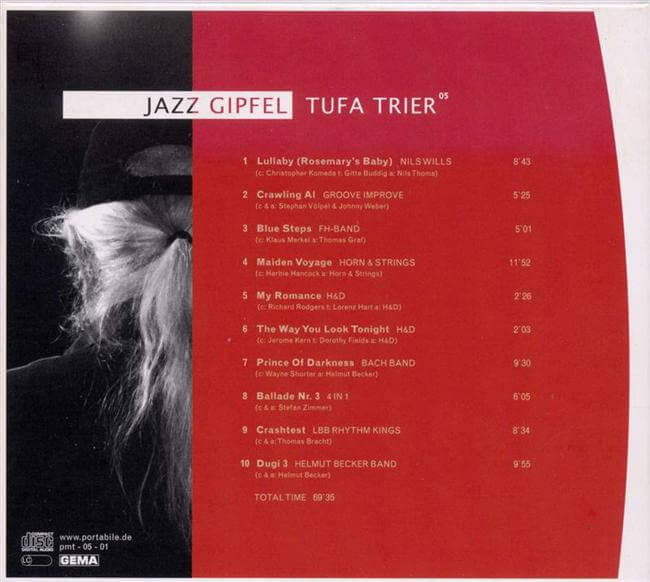 | INFO: Livemitschnitt des 6. Jazzgipfels in der Tuchfabrik (TUFA) Trier am 21. Januar 2005, der als Momentaufnahme einen guten Überblick über die regionale Jazzszene vermittelt. Präsentation von neun Bands und gleichzeitig Start der Label-Aktivitäten von Portabile Music Trier (PMT), mit nachfolgender Zuteilung des Labelcodes LC-15326. |